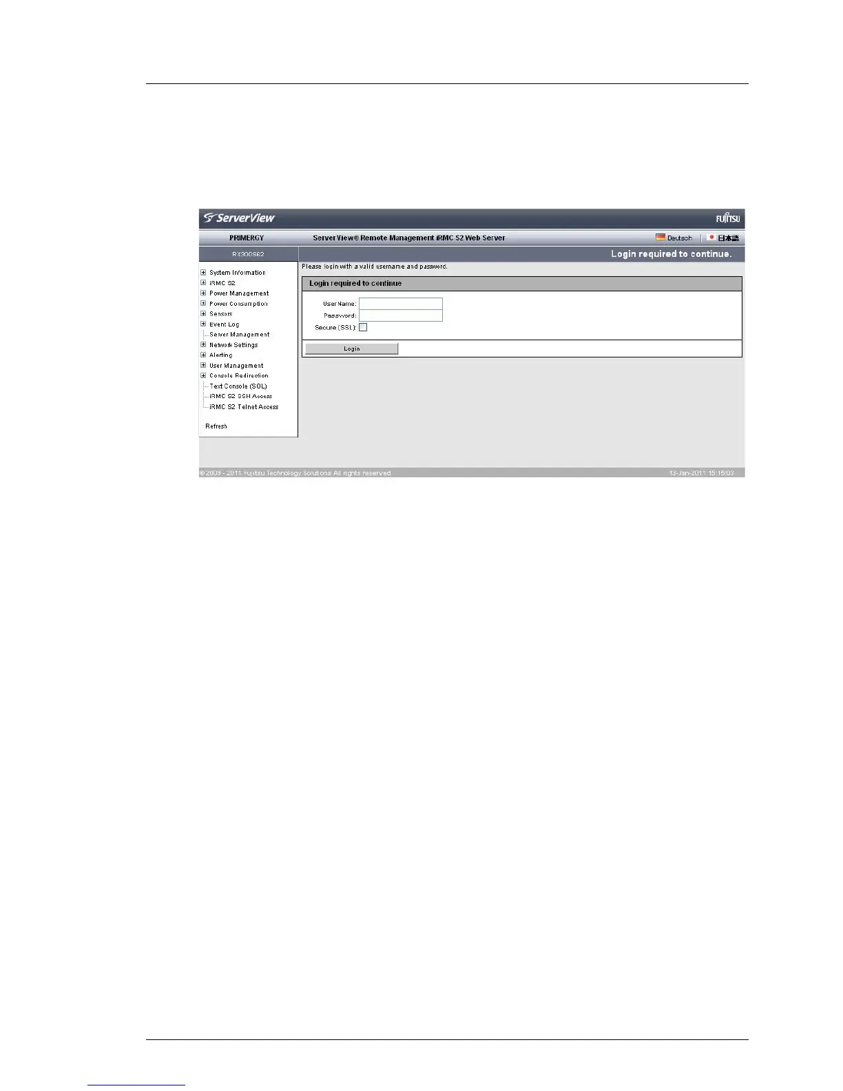 Logging into the iRMC S2/S3 web interface