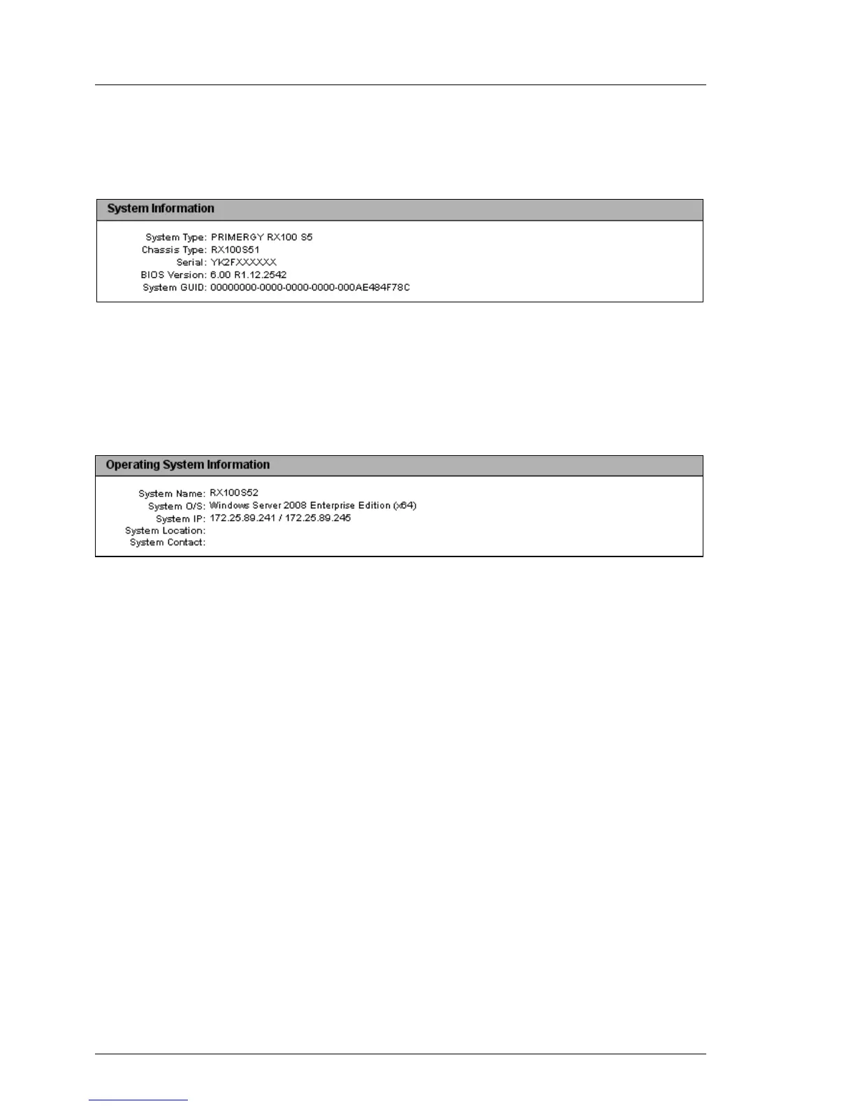System Information lists information on the managed server.