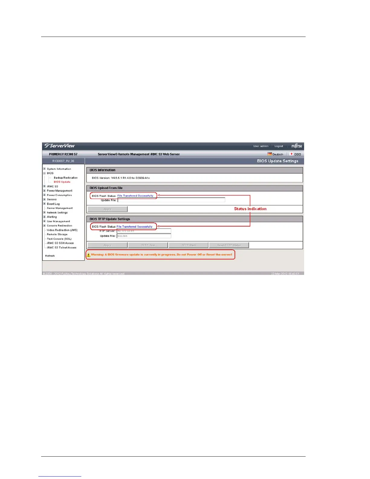 Figure 78: Updating BIOS - (TFTP) download successfully finished