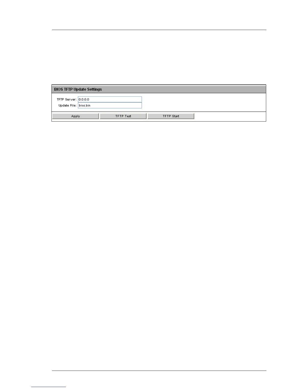 The BIOS TFTP Update Settings group allows you to perform an online update of
