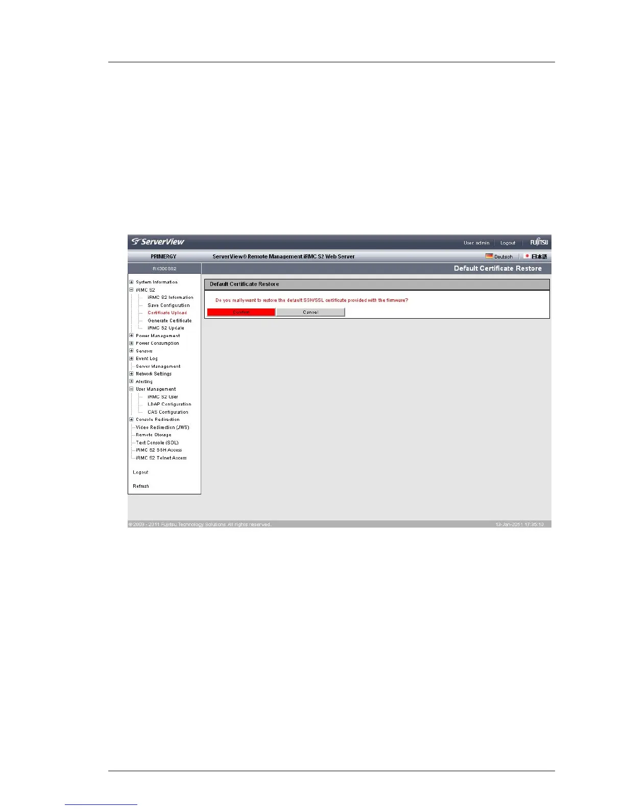 Figure 90: Certificate Upload page - Restoring the default CA certificate