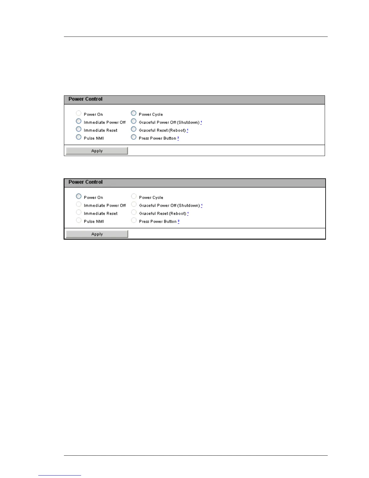Figure 102: Power On/Off page, Restart (server is powered up)