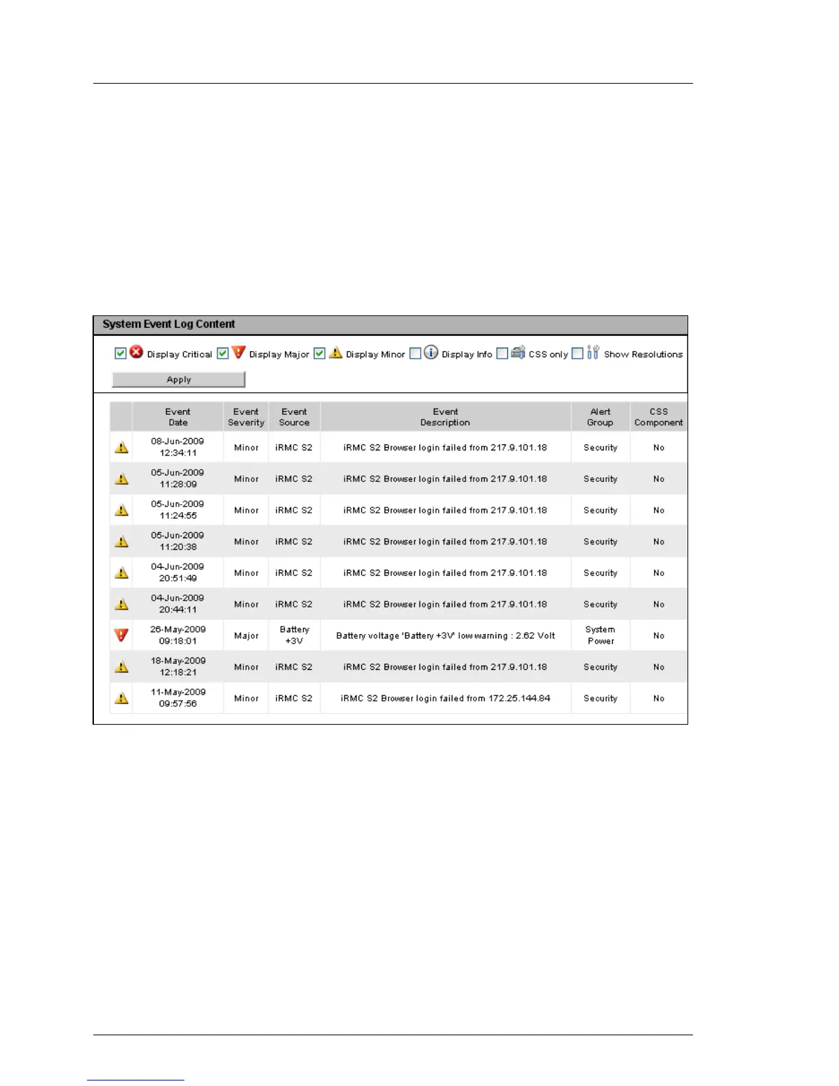 System Event Log Content