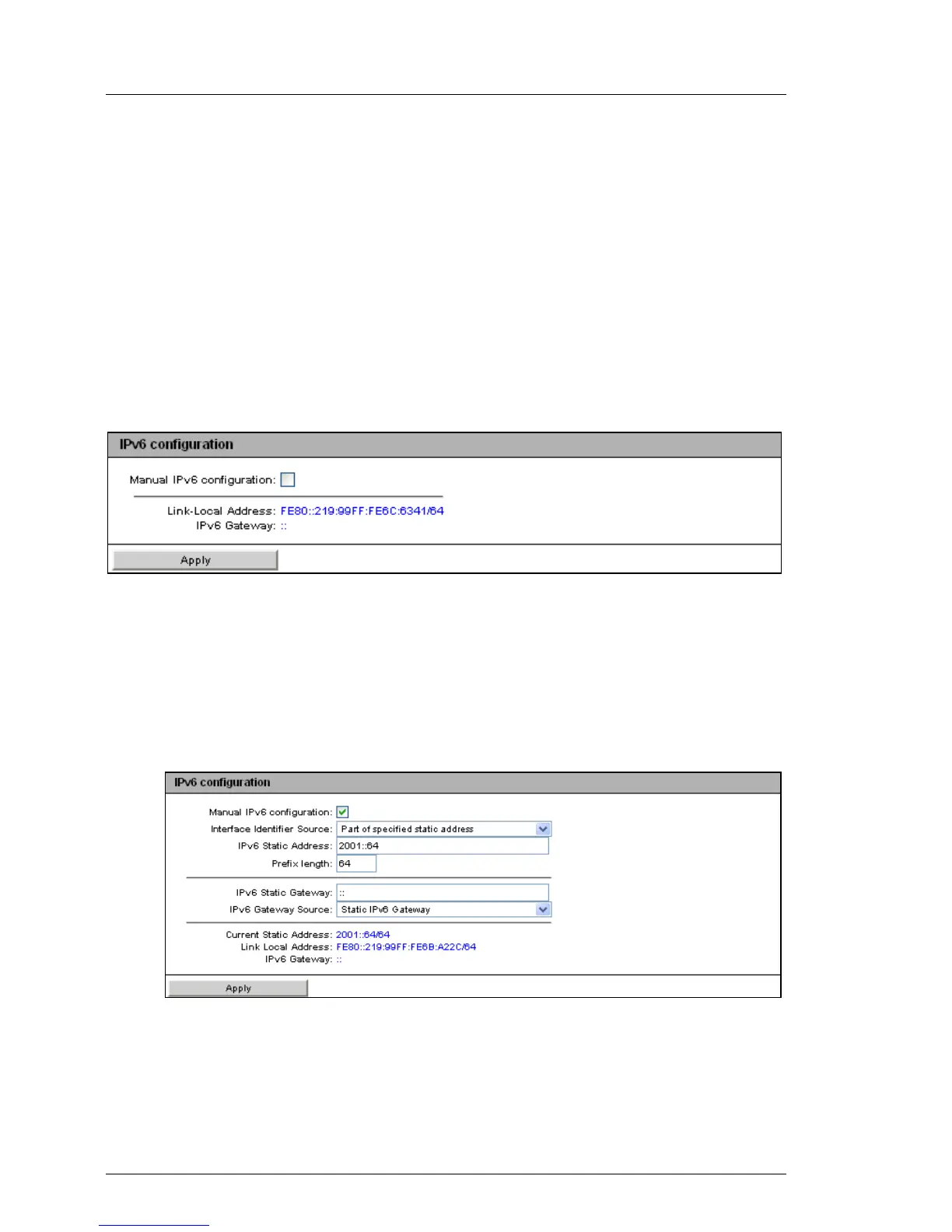 Figure 137: Network Interface page - manual IPv6 configuration disabled