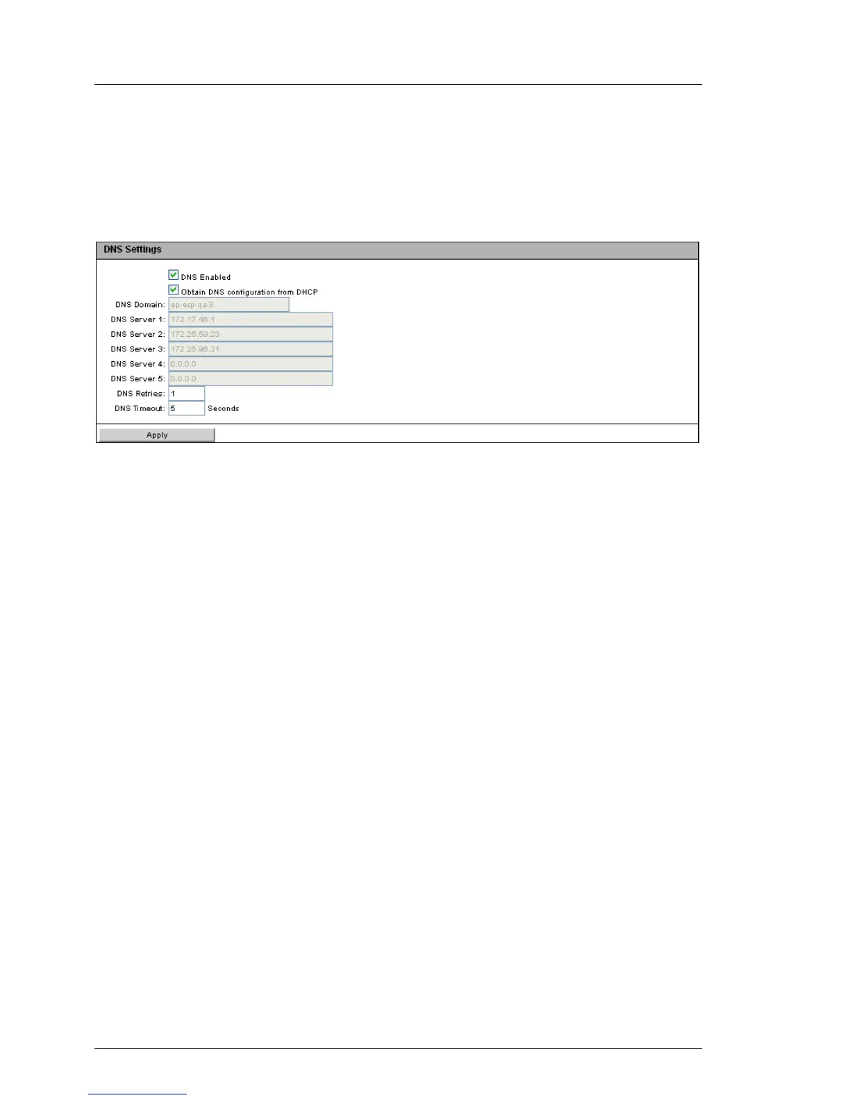 Figure 141: DNS Configuration page - DNS Settings