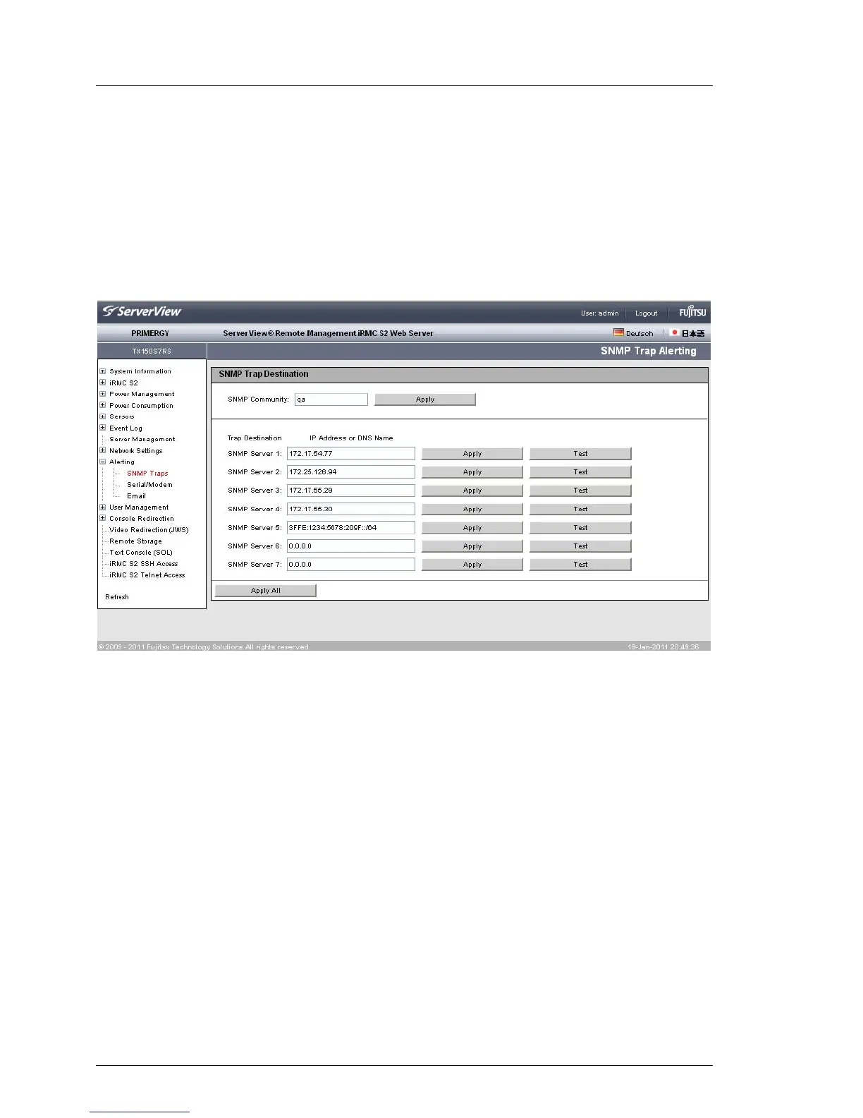 Ê Click Apply to activate the SNMP server as a trap destination.