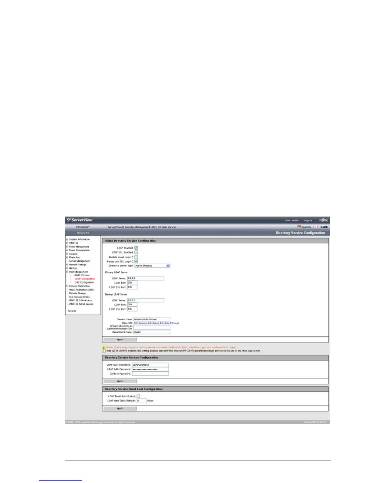 I Currently, support for iRMC S2/S3 LDAP access is provided for the