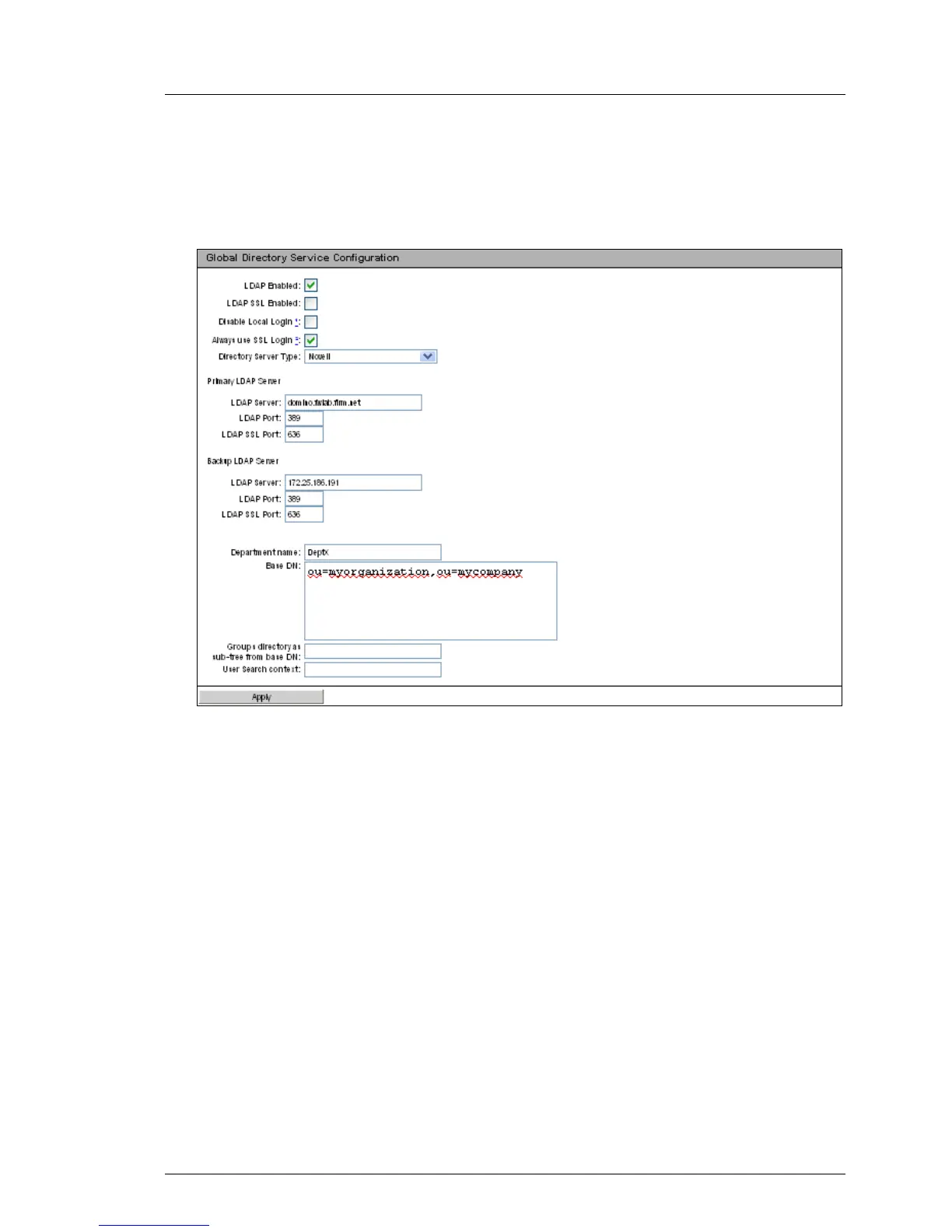 Figure 164: Global Directory Service Configuration: Specifications for Novell eDirectory