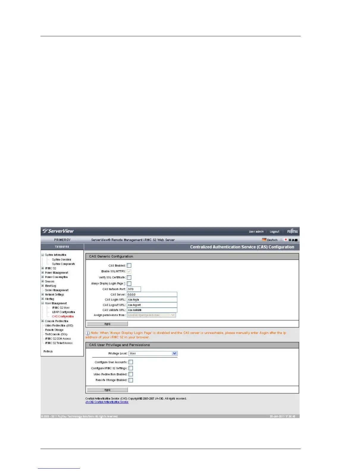 configure the iRMC S2/S3 web interface for CAS-based single sign-on (SSO)