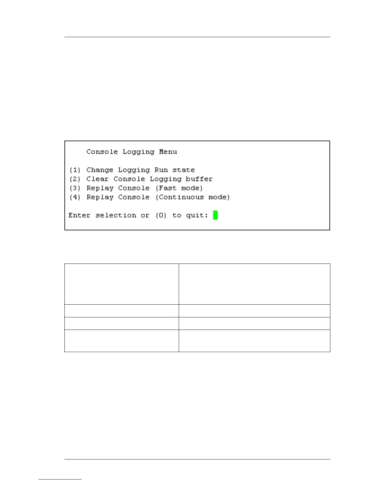Table 16: Console Logging menu