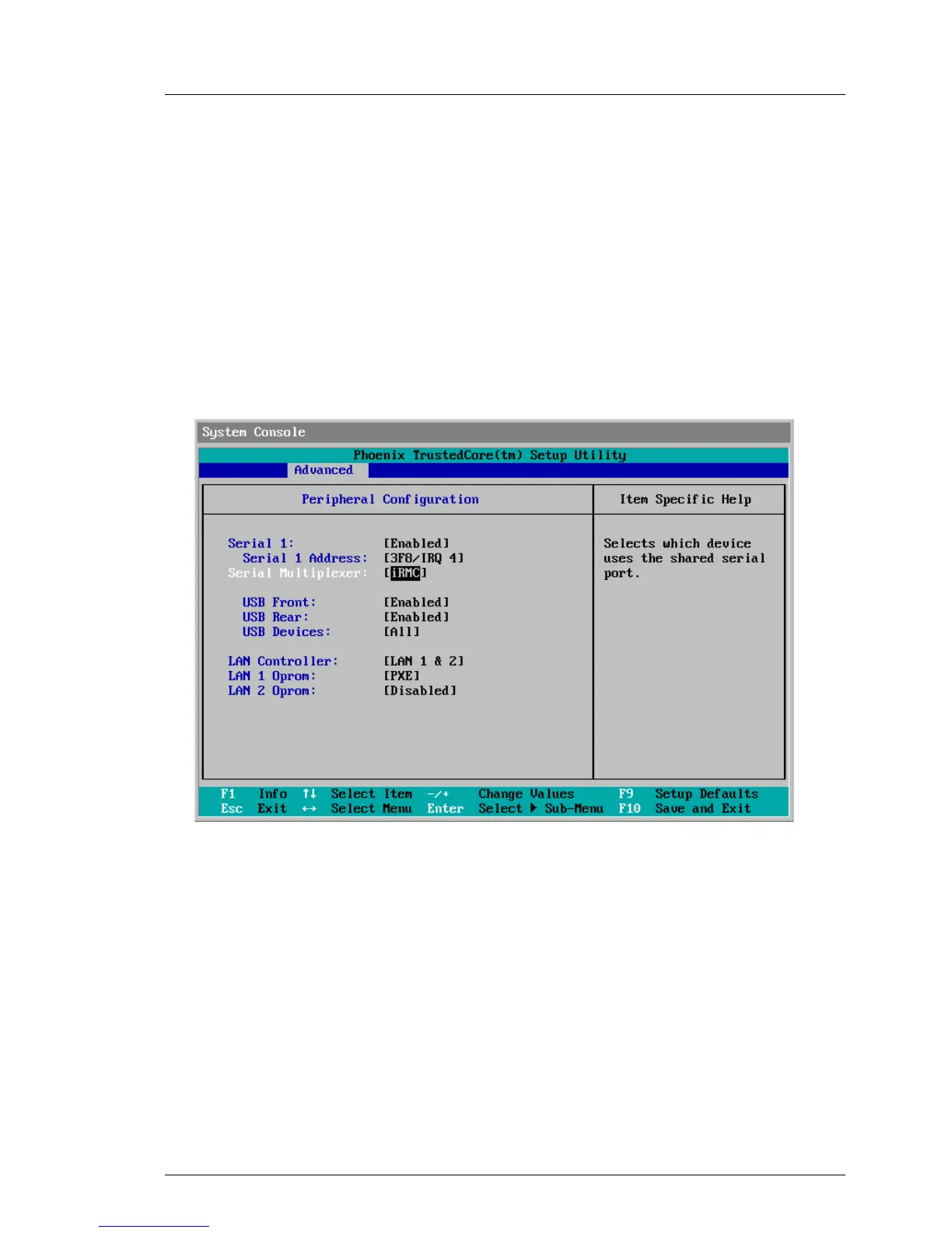 Figure 10: Peripheral Configuration menu (as it appears in the TrustedCore setup utility)