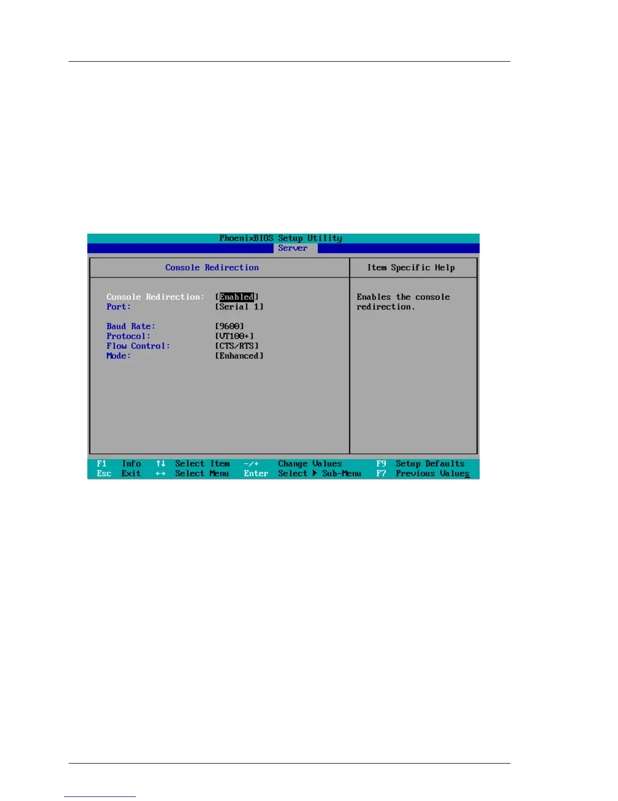 Ê Call the Console Redirection menu: