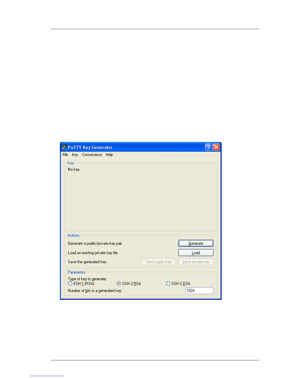 Ê Under Parameters, select the key type SSH-2RSA and click Generate to start