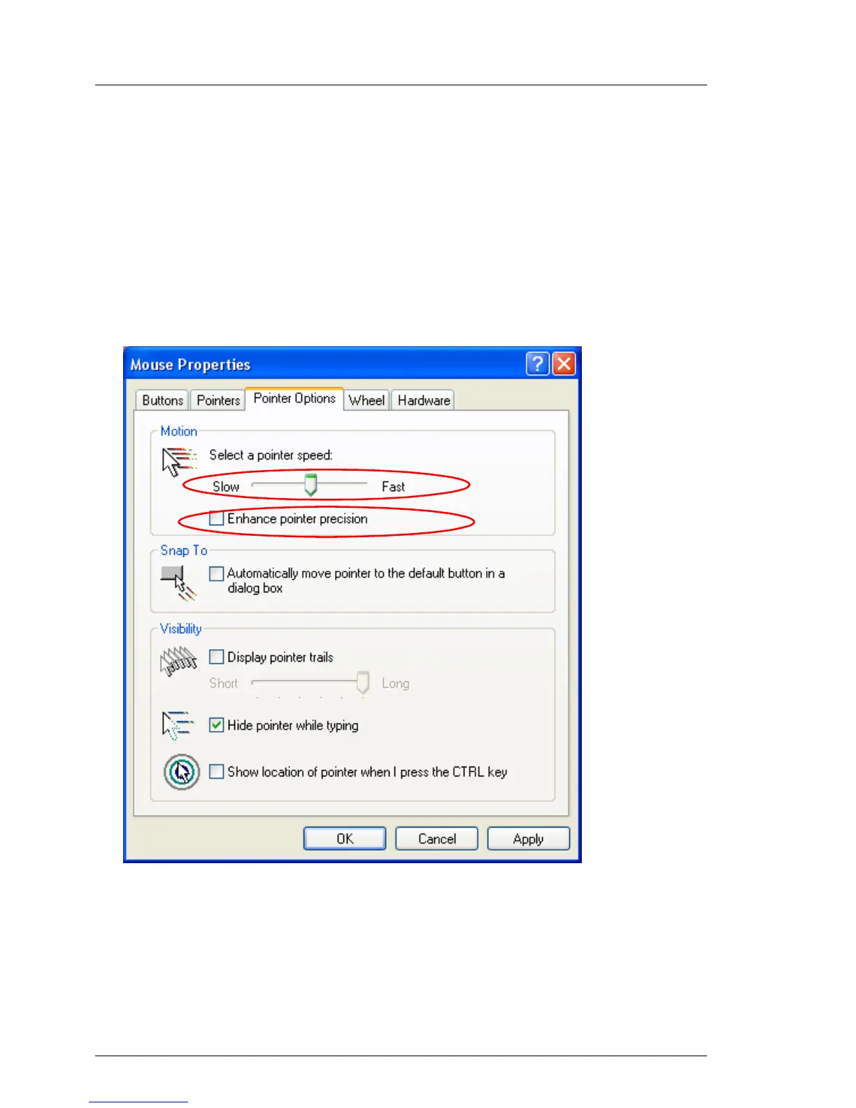 Ê Disable the Enhance Pointer Precision option.