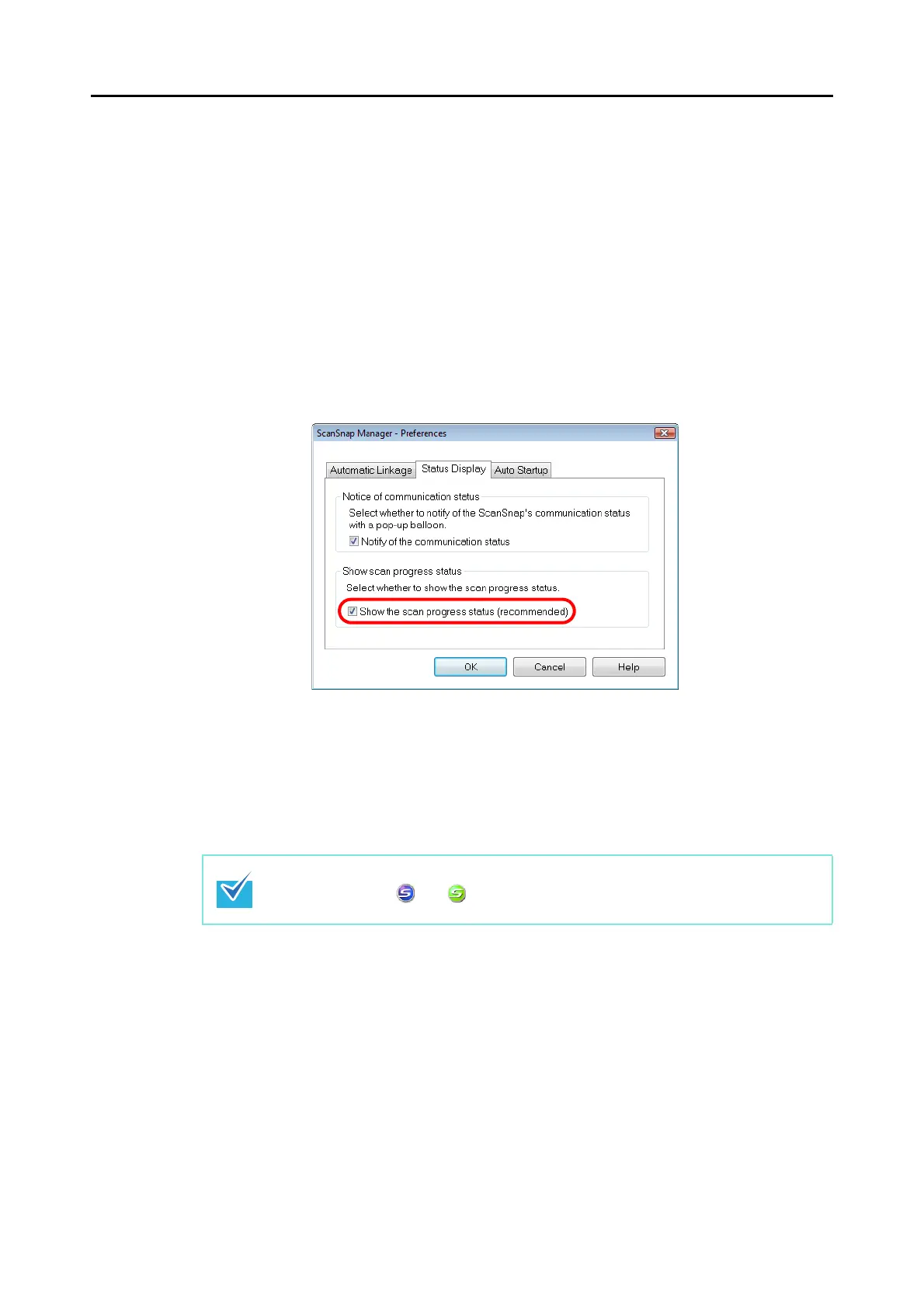 When the scanning progress status dialog box is hidden, the ScanSnap Manager icon