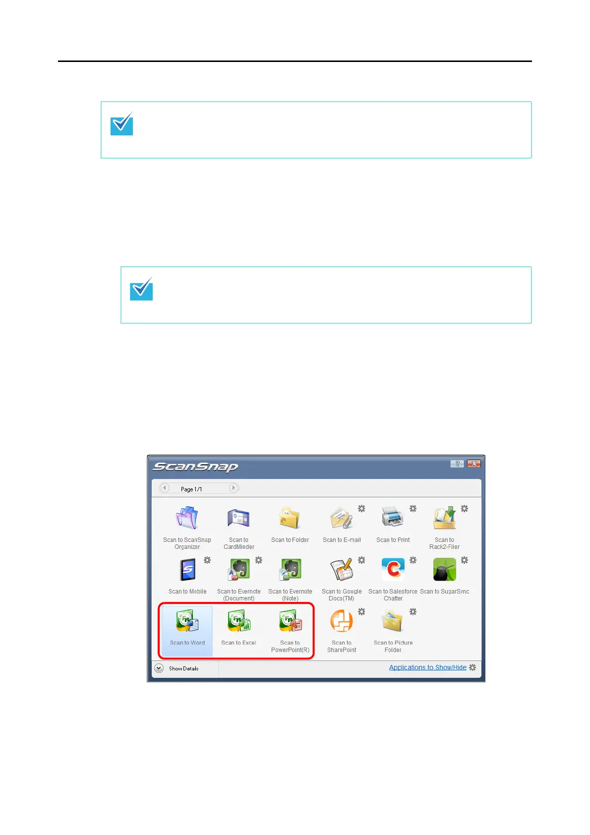 4. Click the [Scan to Word], [Scan to Excel] or [Scan to PowerPoint(R)]