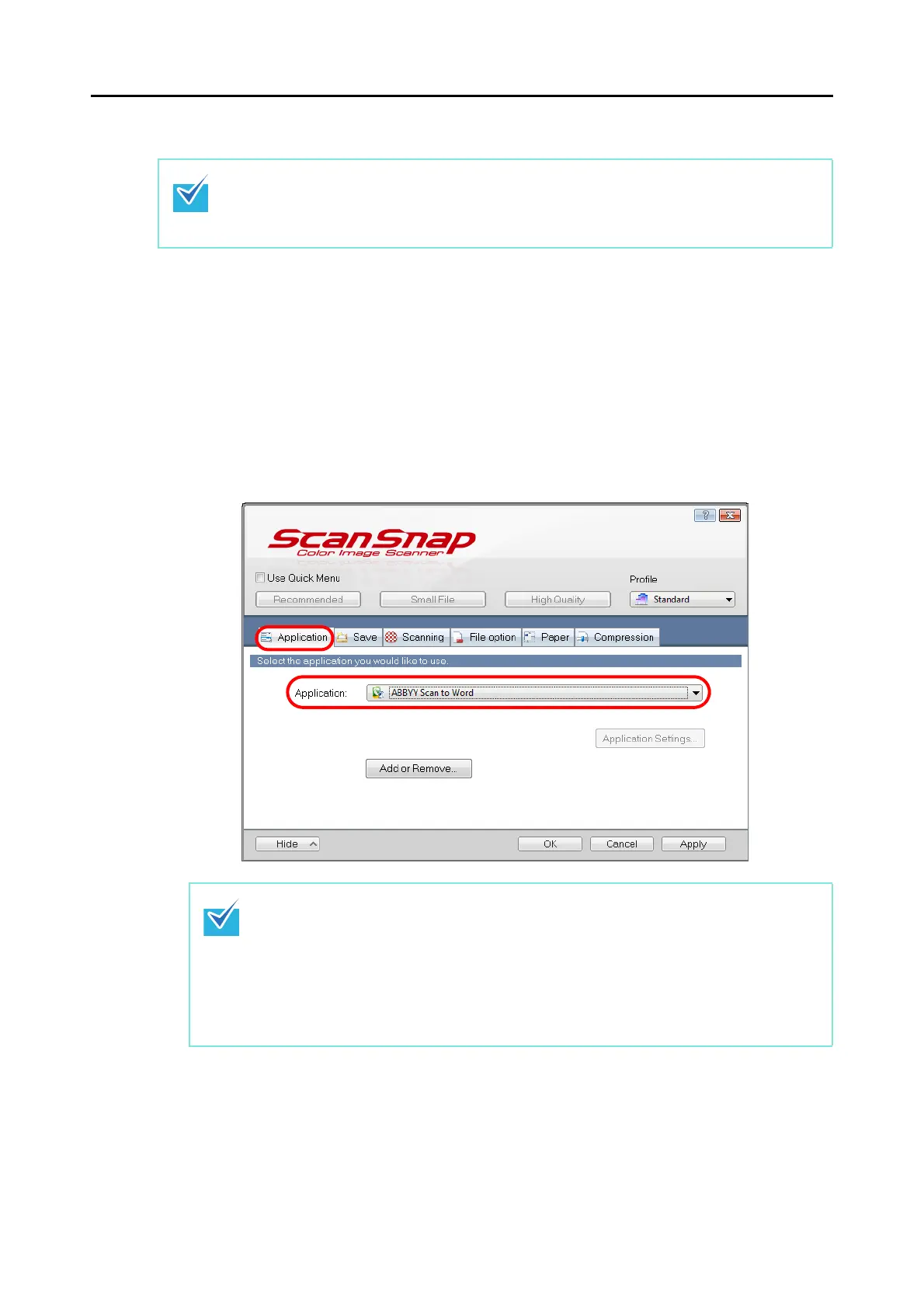 z ScanSnap Manager can also link with [ABBYY Scan to Word], [ABBYY Scan to Excel]