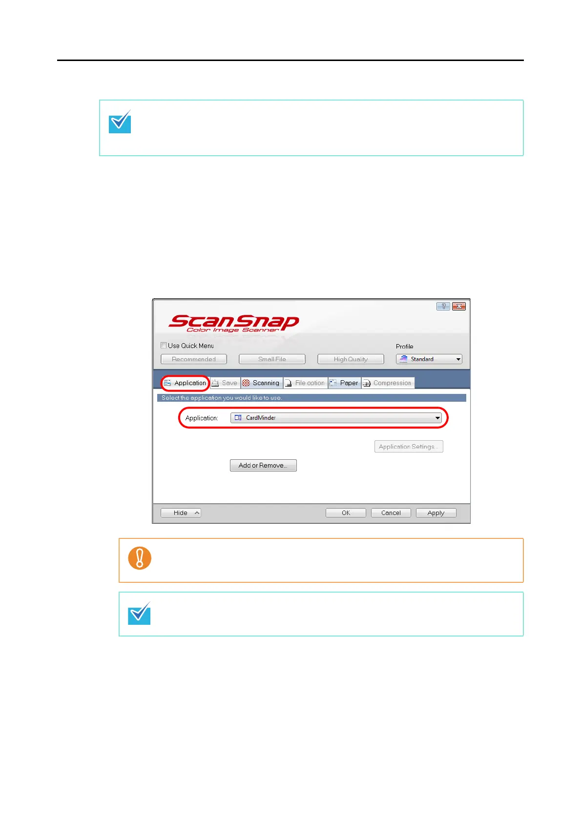 ScanSnap Manager can also link with [CardMinder] when you select: