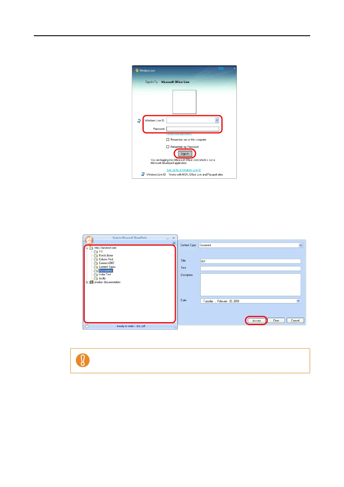 For more details, refer to the Scan to Microsoft SharePoint User Guide.