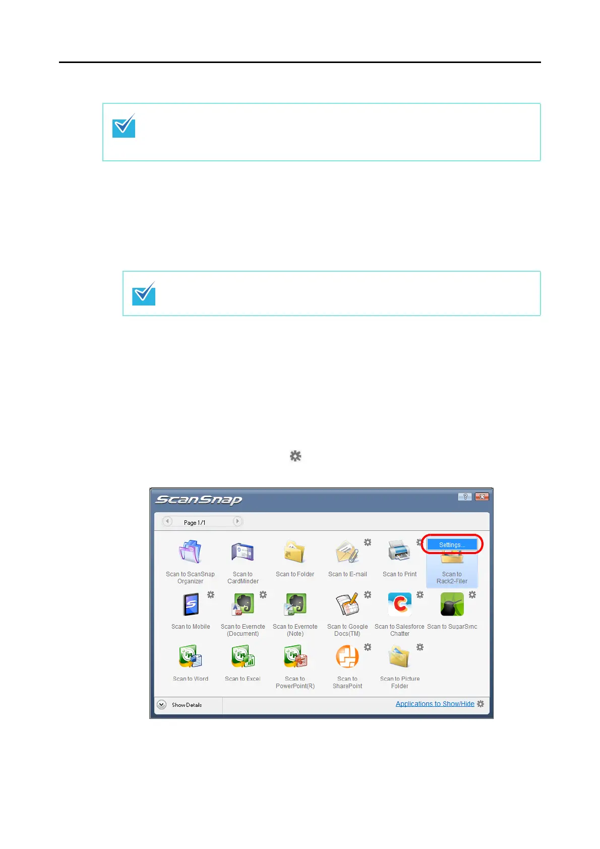 D The [ScanSnap - > Rack2] dialog box appears.