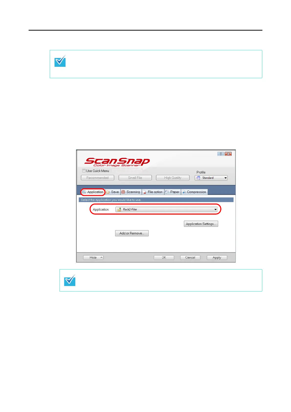 ScanSnap Manager can also link with [Rack2-Filer] when you select: