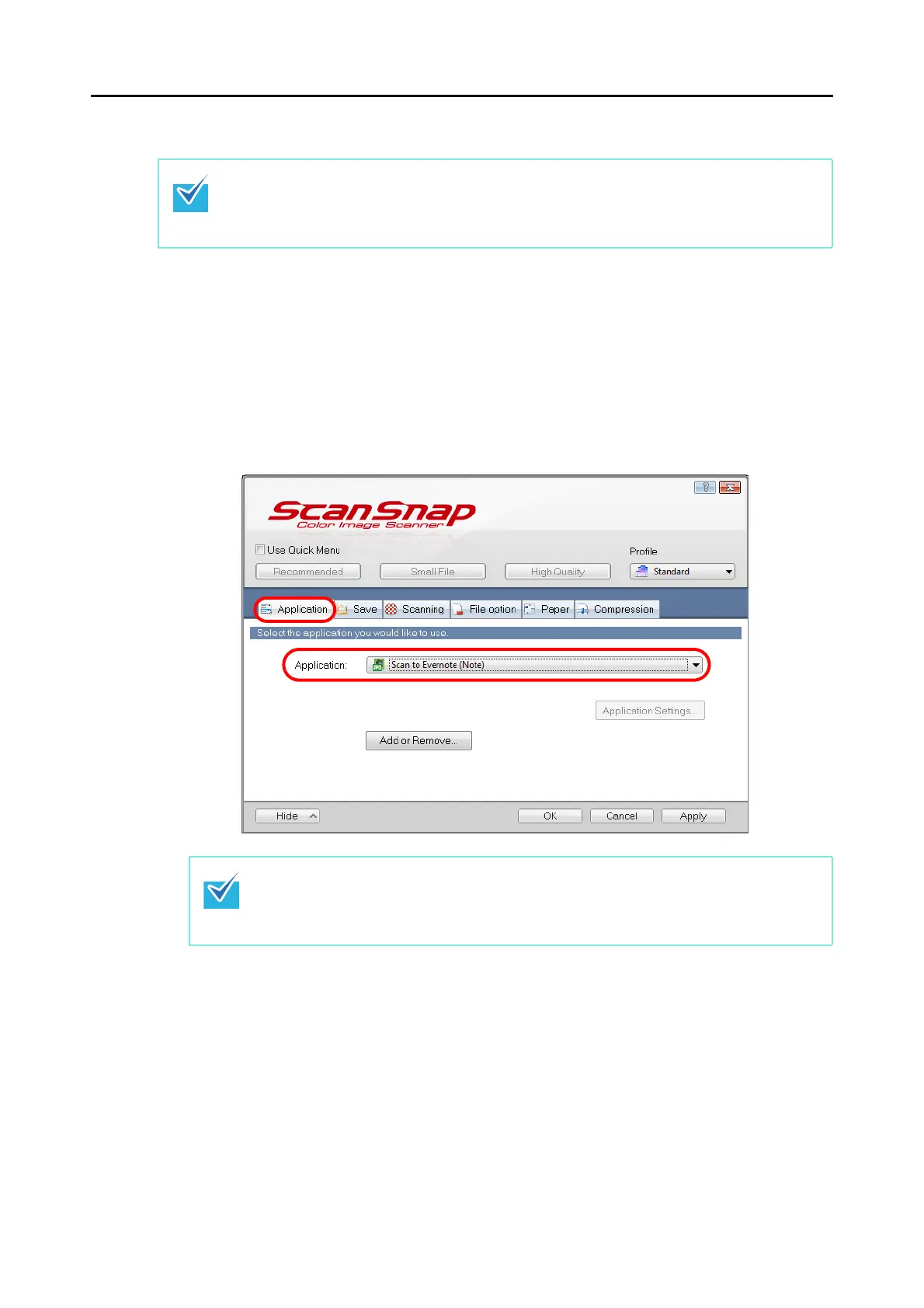 z [Scan to Evernote (Note)] from the [Profile] drop-down list of the ScanSnap setup dialog