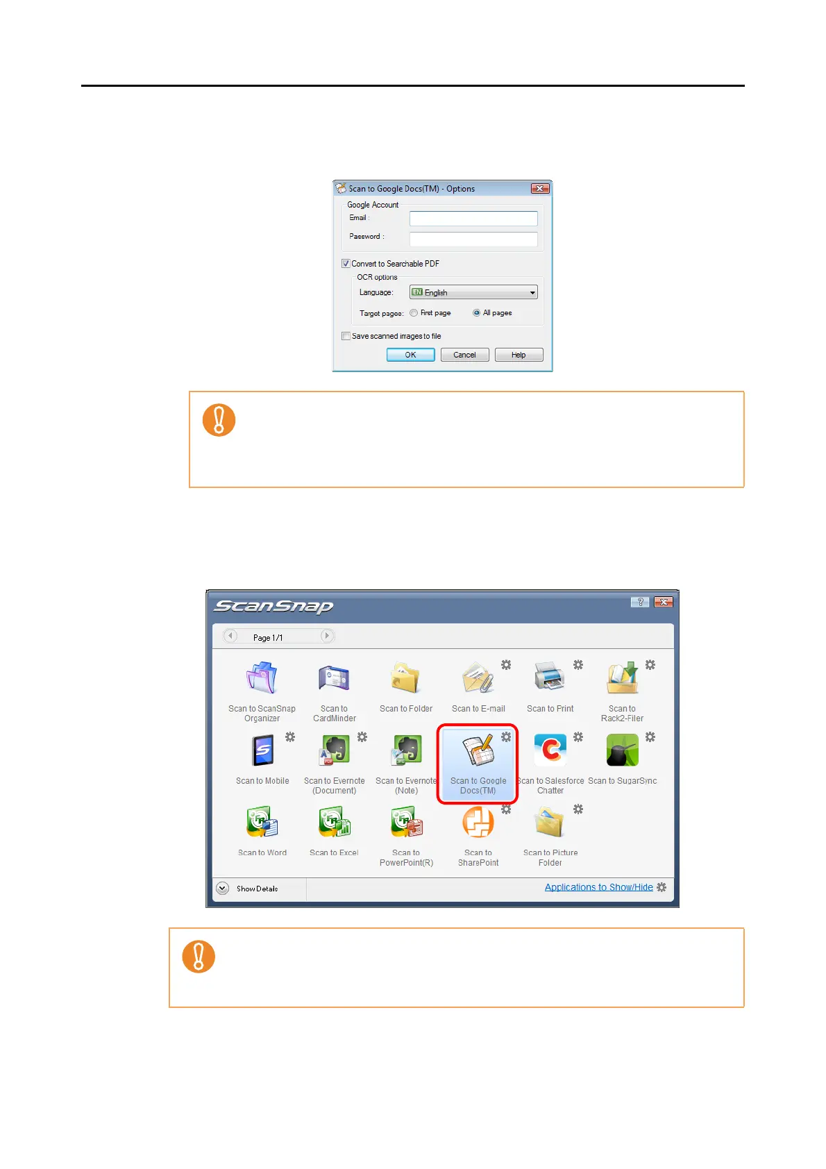 For details about the [Scan to Google Docs(TM) - Options] dialog box, refer to the
