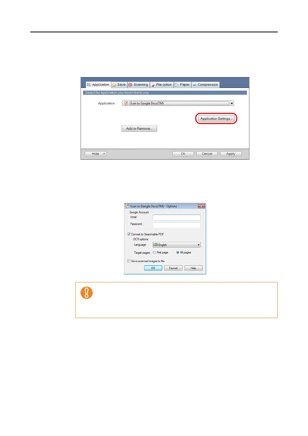 For details about the [Scan to Google Docs(TM) - Options] dialog box, refer to the