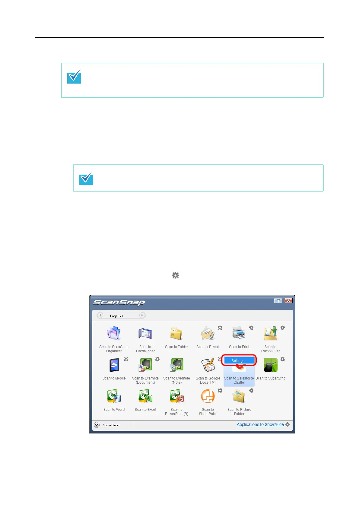 1. Move the mouse cursor to the mark on the [Scan to Salesforce Chatter] icon, and