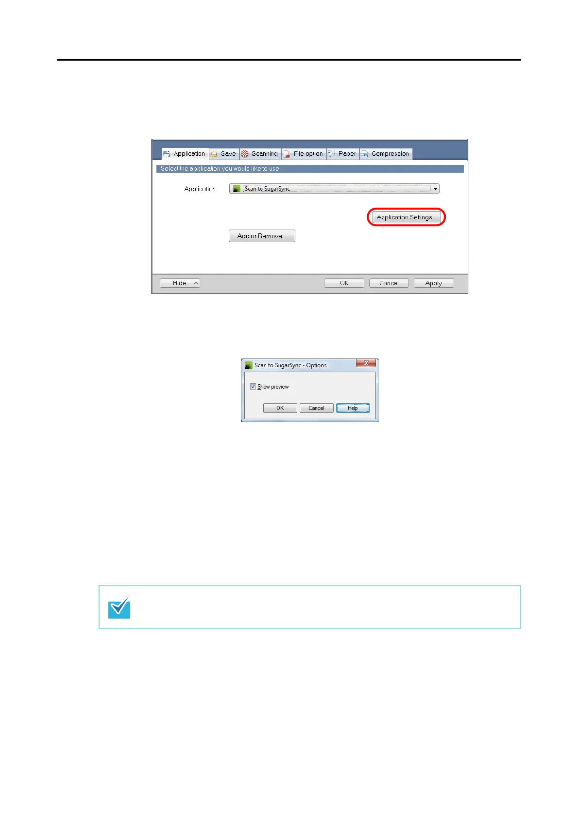 D The [Scan to SugarSync - Options] dialog box appears.