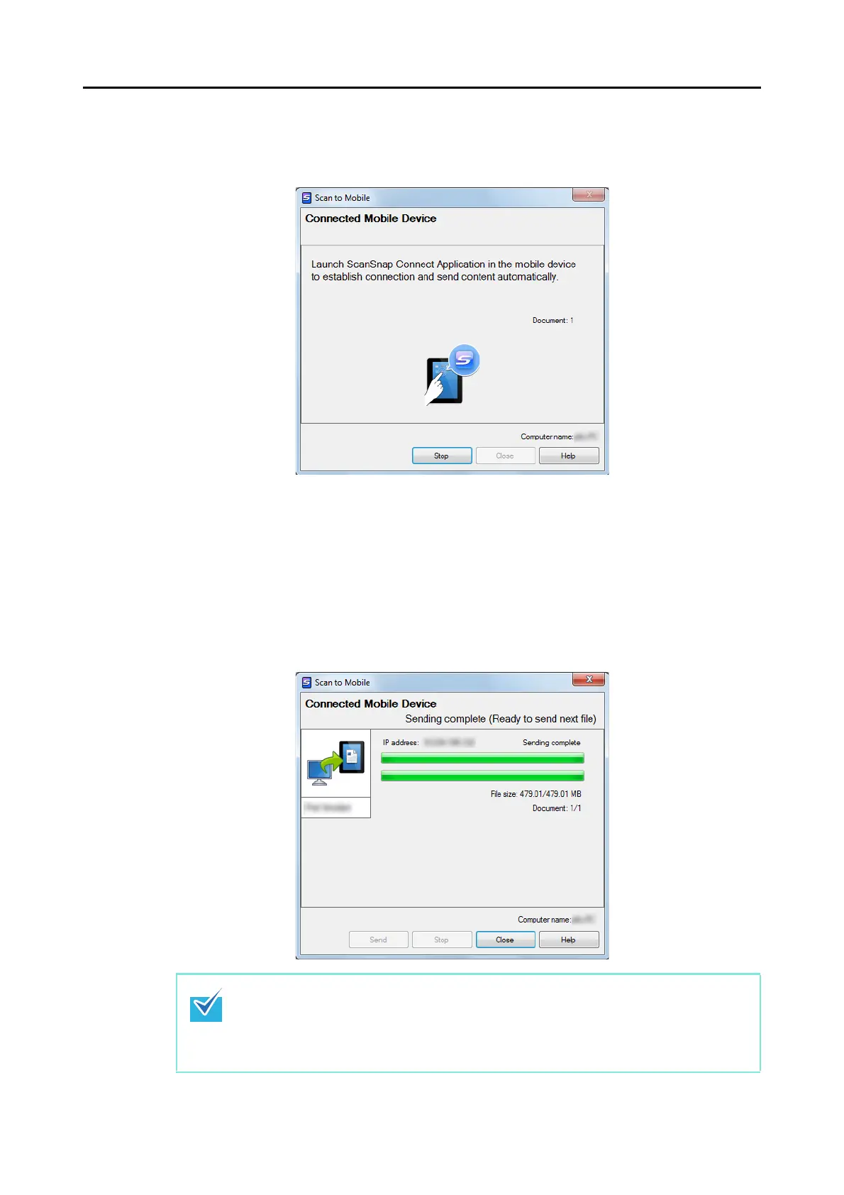 Mobile - Basic] dialog box, the [Send] button appears in the [Scan to Mobile] dialog box.