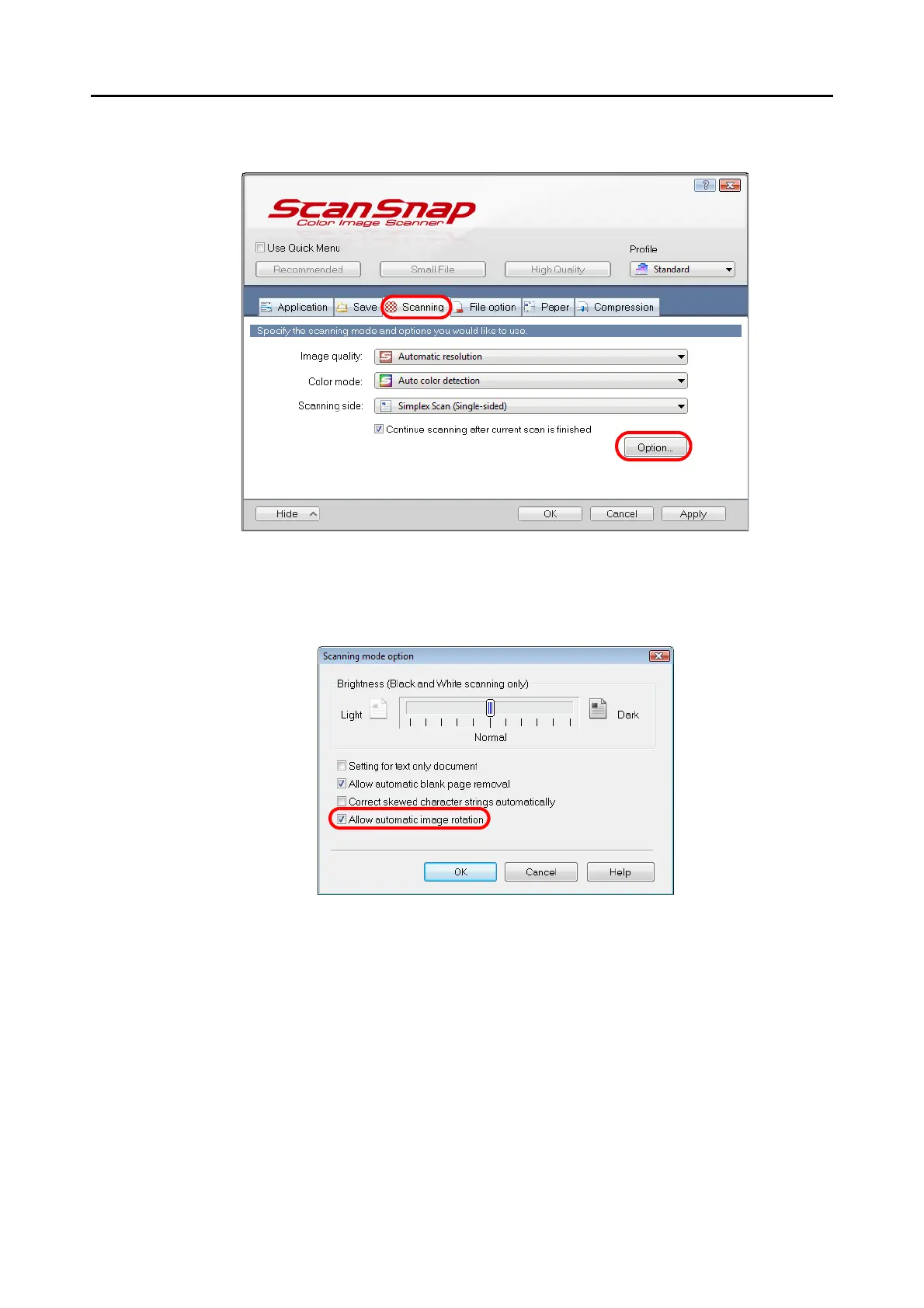 2. Click the [Option] button in the [Scanning] tab.