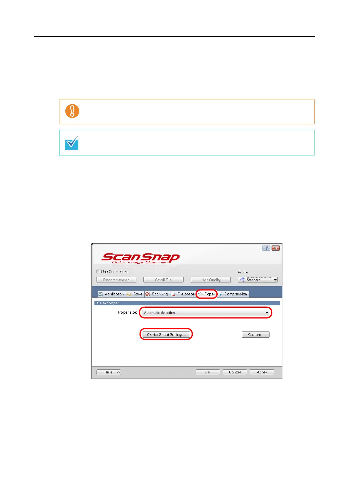 In the [Scanning mode option] dialog box ([Scanning] tab → [Option] button in the ScanSnap