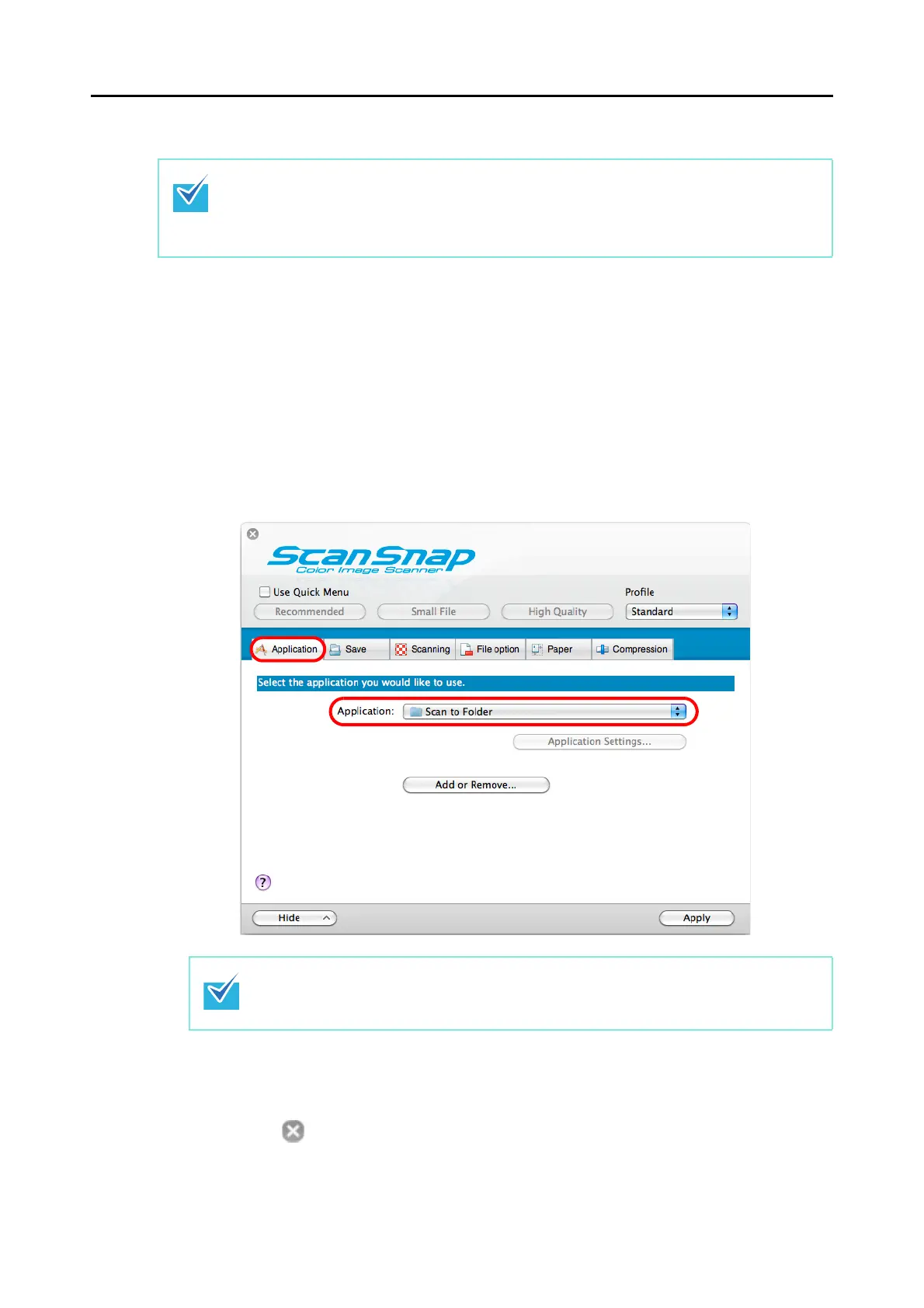 z [Scan to Folder] from the [Profile] pop-up menu of the ScanSnap setup window