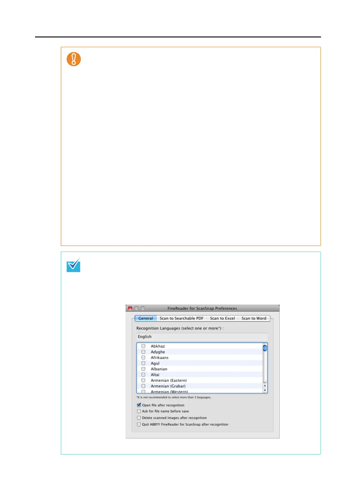Preferences]. Then, select [FineReader for ScanSnap] menu → [Preferences] to display the