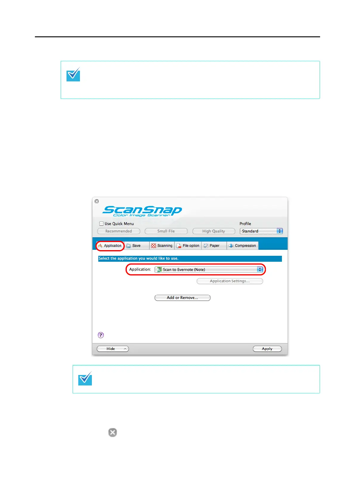 z [Scan to Evernote (Note)] from the [Profile] pop-up menu of the ScanSnap setup window