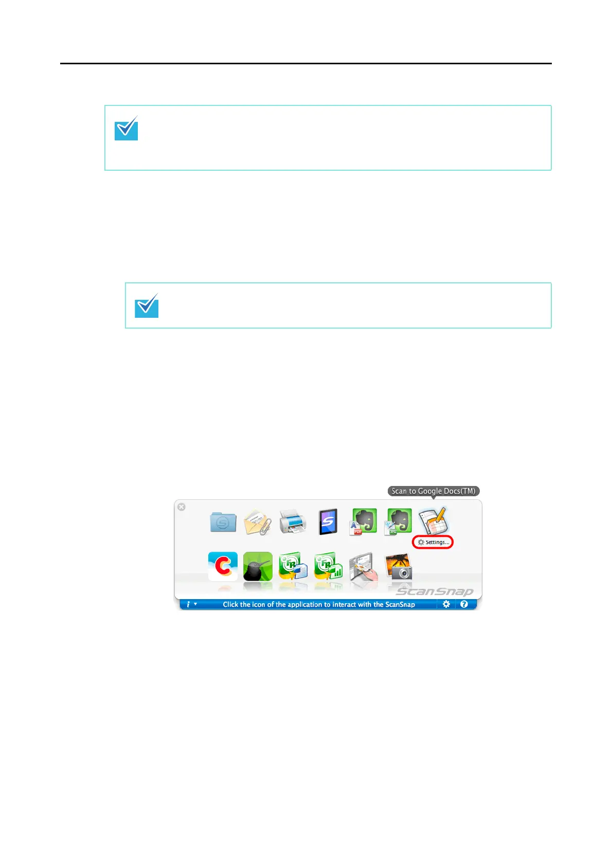 1. Click [Settings] under the [Scan to Google Docs(TM)] icon.