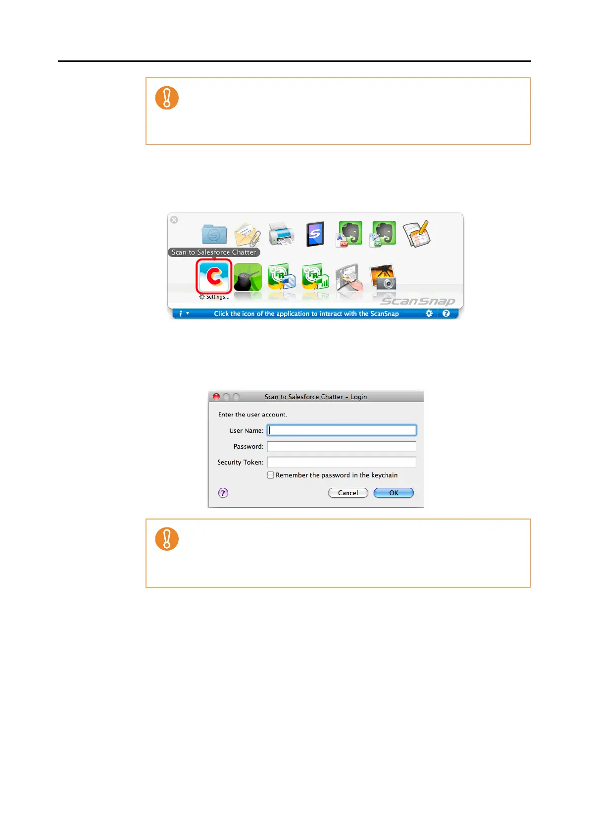Options] window in step 4., the [Scan to Salesforce Chatter - Login] window appears.