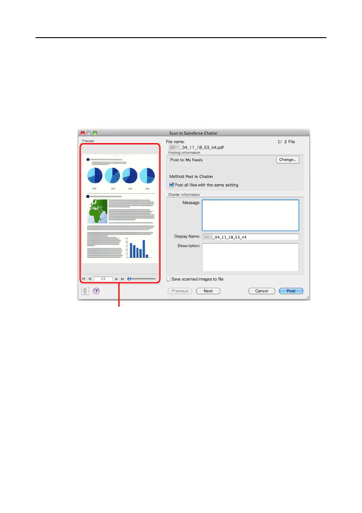 For details about the [Scan to Salesforce Chatter] window, refer to the ScanSnap