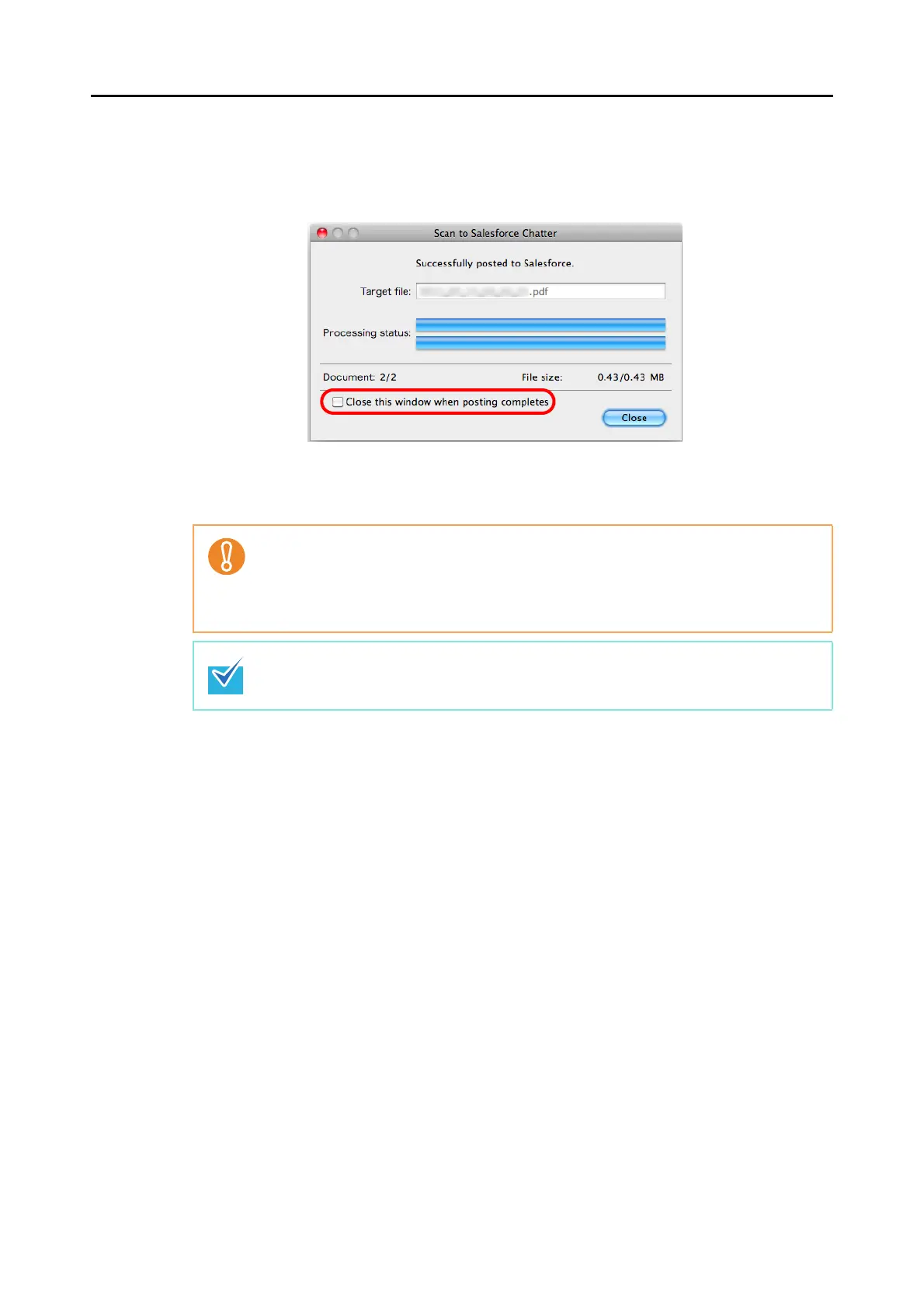 Salesforce Chatter] window is closed. Close the [Scan to Salesforce Chatter] window