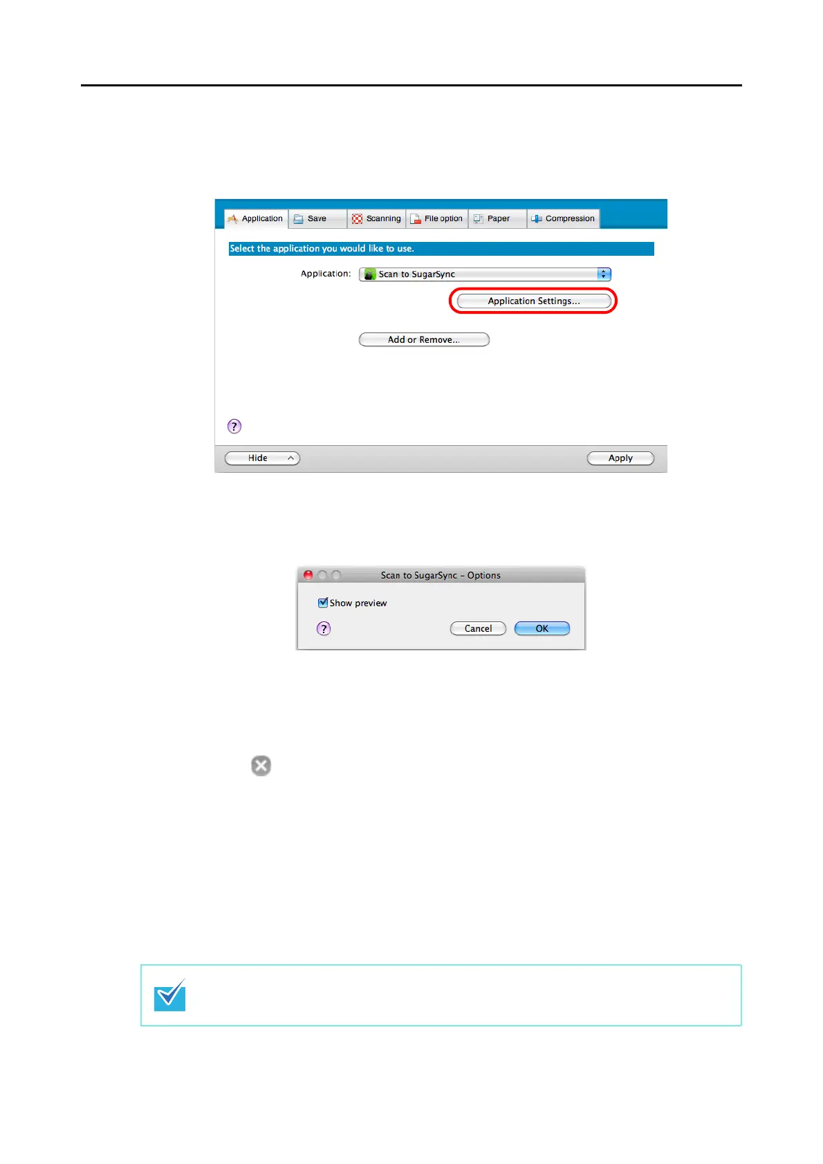 For details about the [Scan to SugarSync - Options] window, refer to the ScanSnap