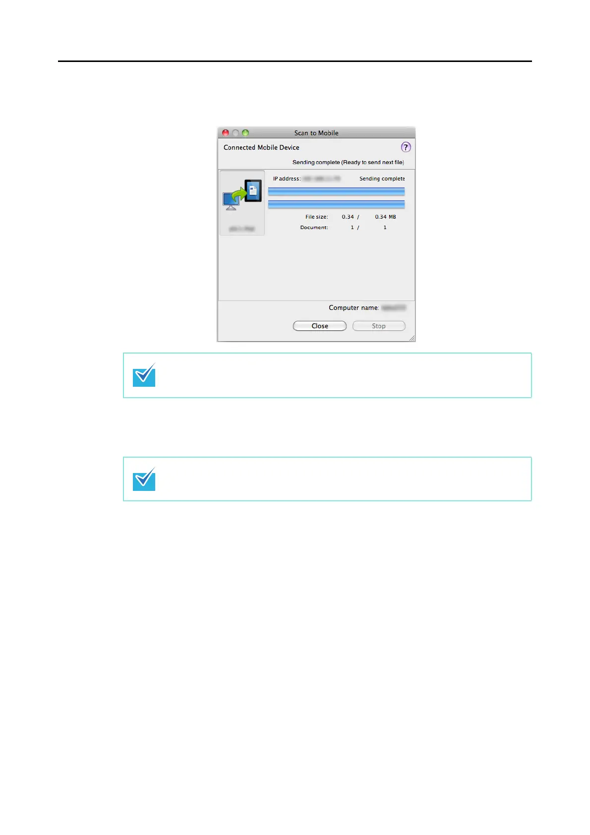 The [Scan to Mobile] window closes automatically when the mobile device is disconnected