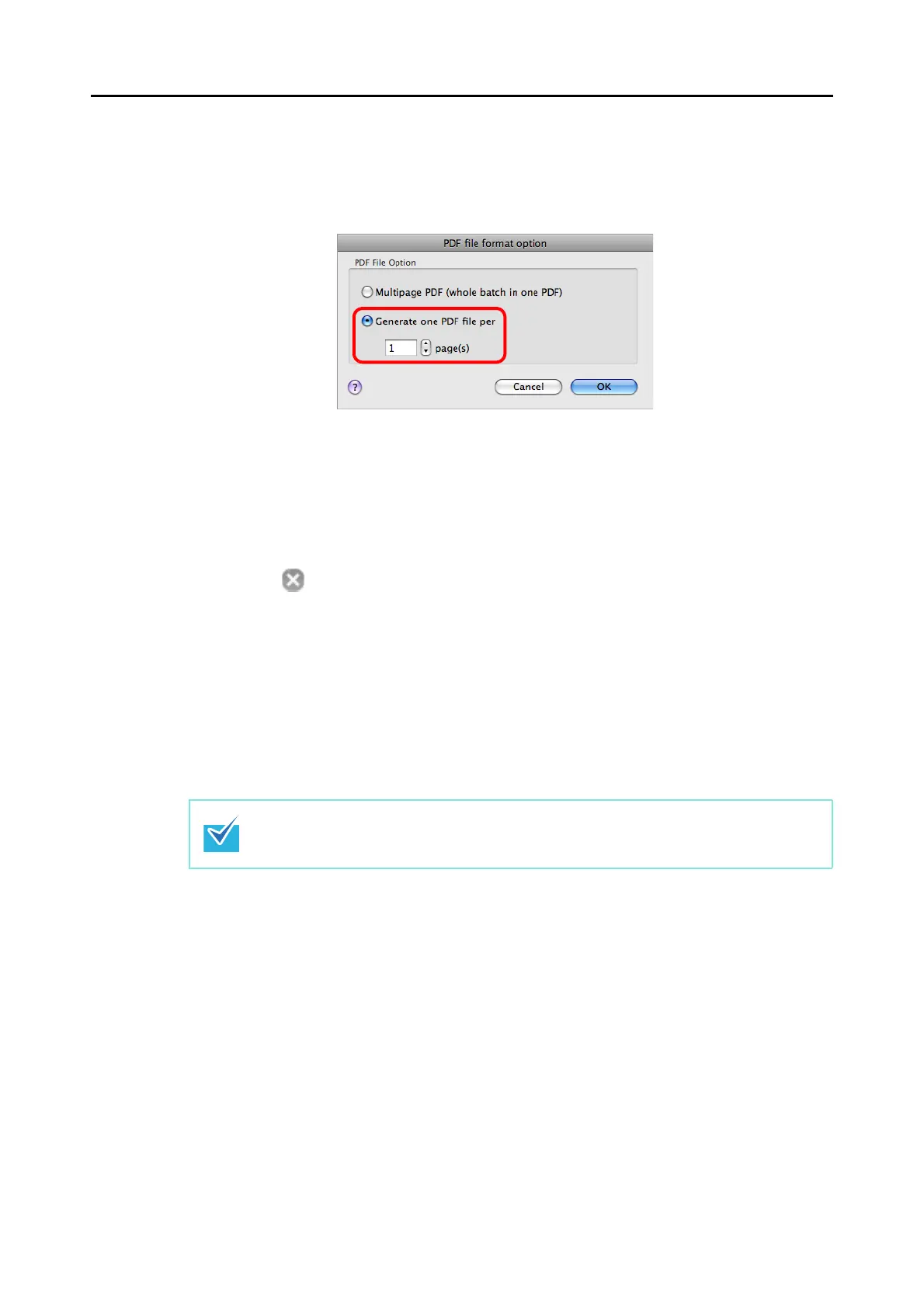 3. Select [Generate one PDF file per (n) page(s)] and enter the number of