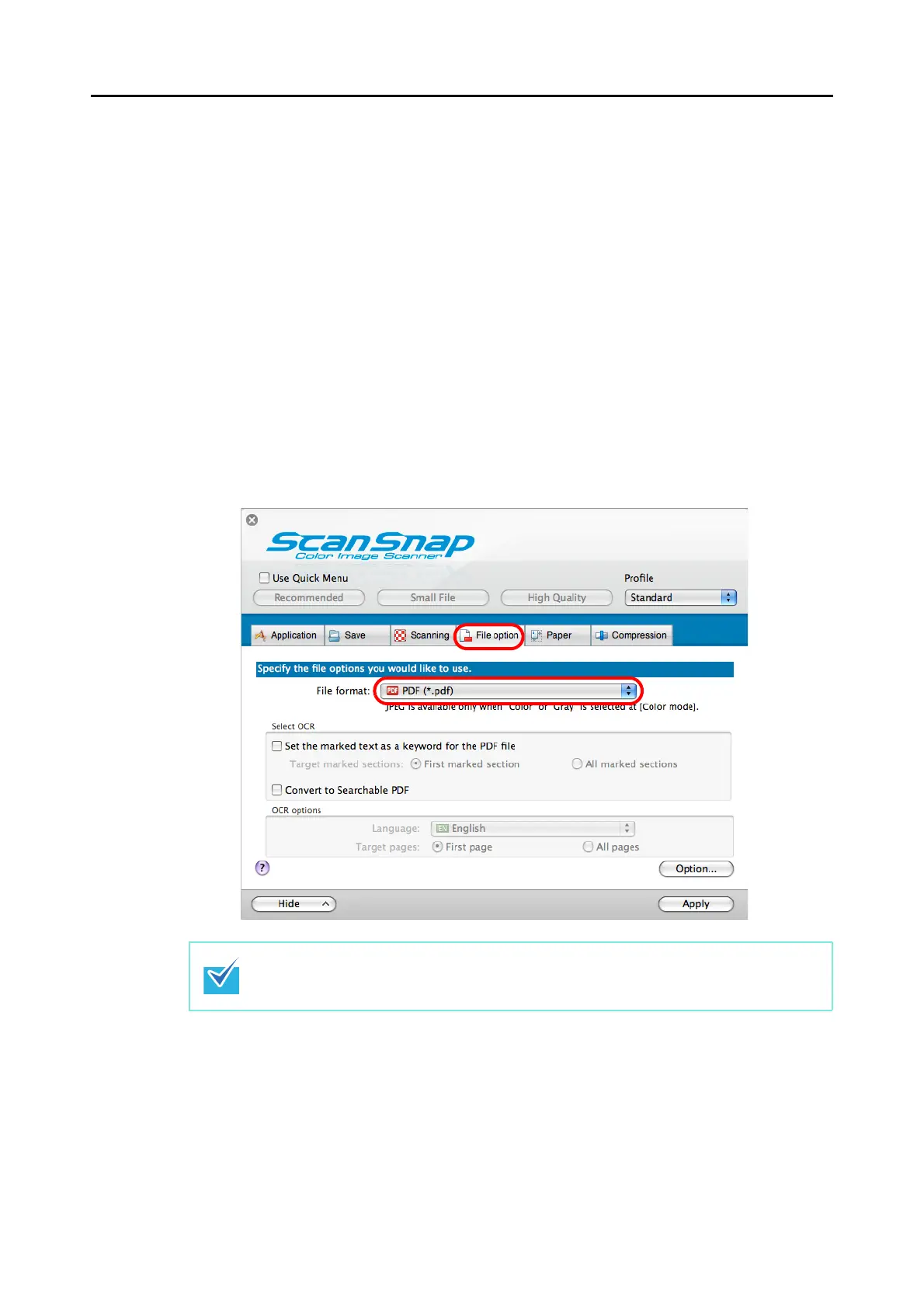 2. From the [File format] pop-up menu in the [File option] tab, select [PDF