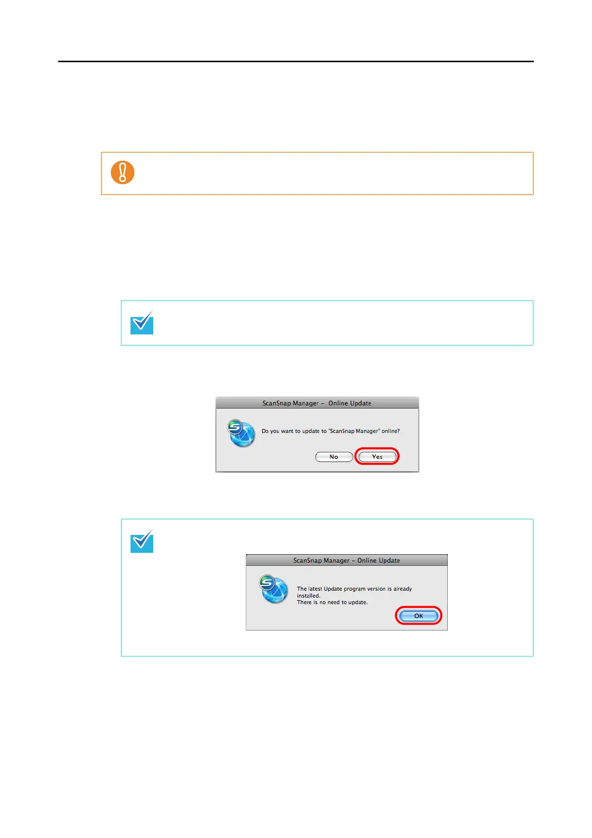 D If a later version of ScanSnap Manager (update) is available, a message confirming