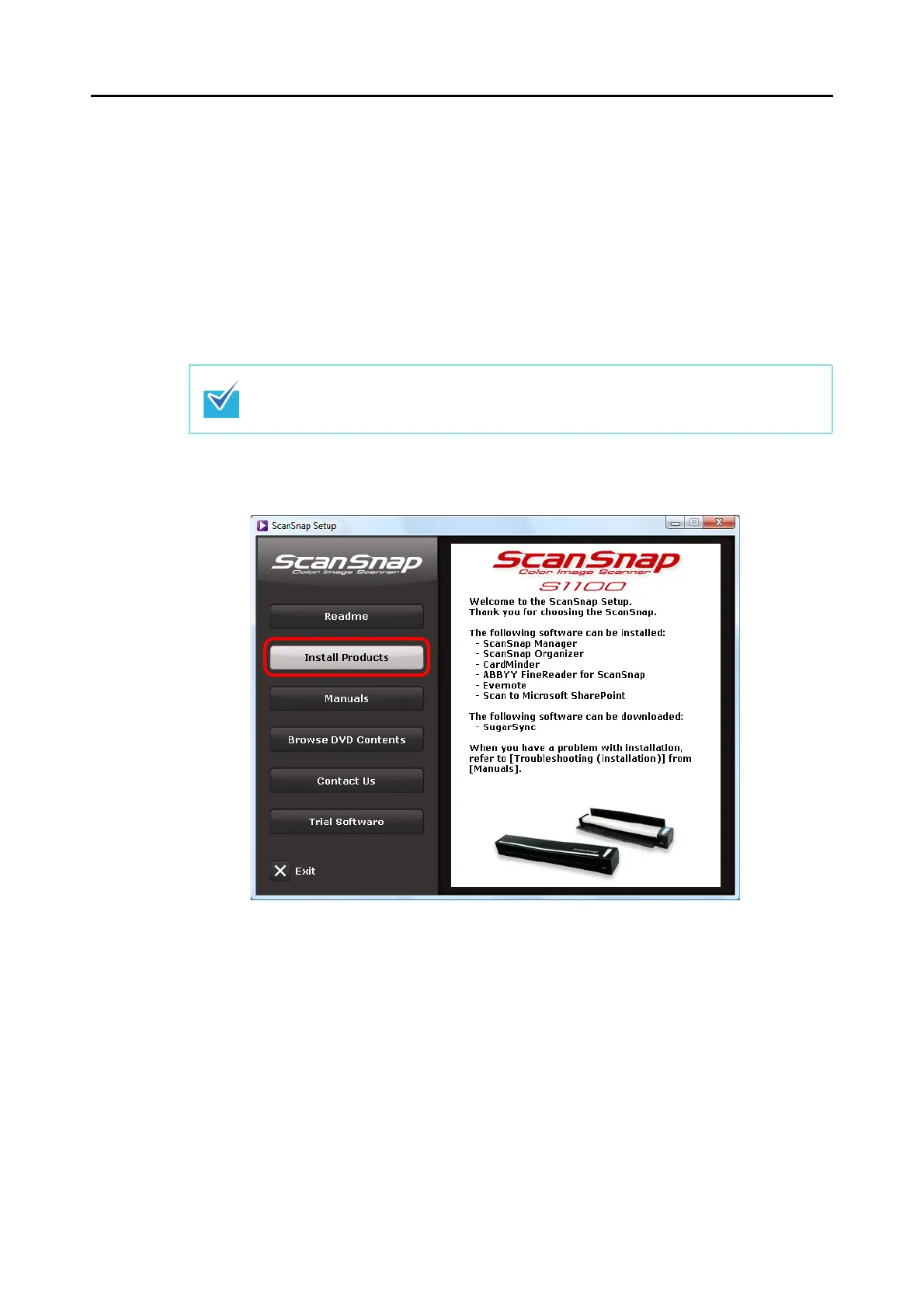 If the [ScanSnap Setup] dialog box does not appear, double-click "ScanSnap.exe" in the