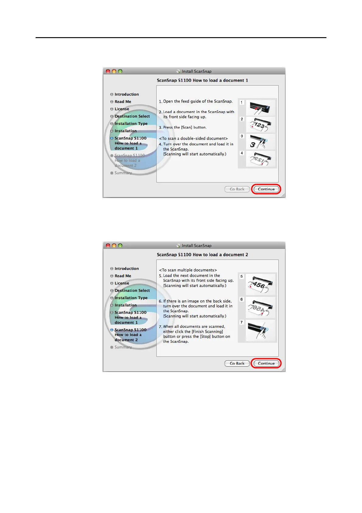 D The [ScanSnap S1100 How to load a document 2] screen appears.