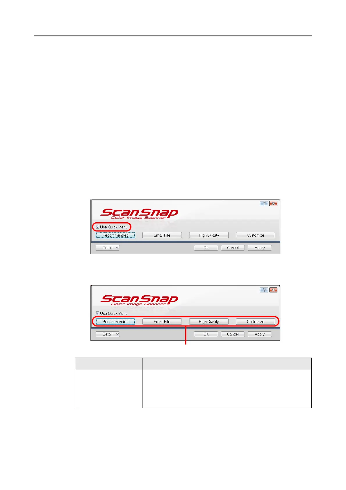 There are two ways to perform scanning, either with the Quick Menu or without using the