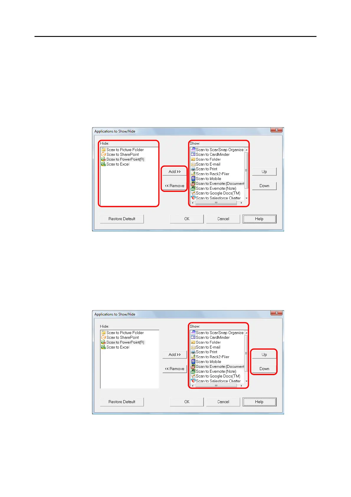 is moved to [Hide]. Likewise, when you select an application in [Hide] and click the [Add]