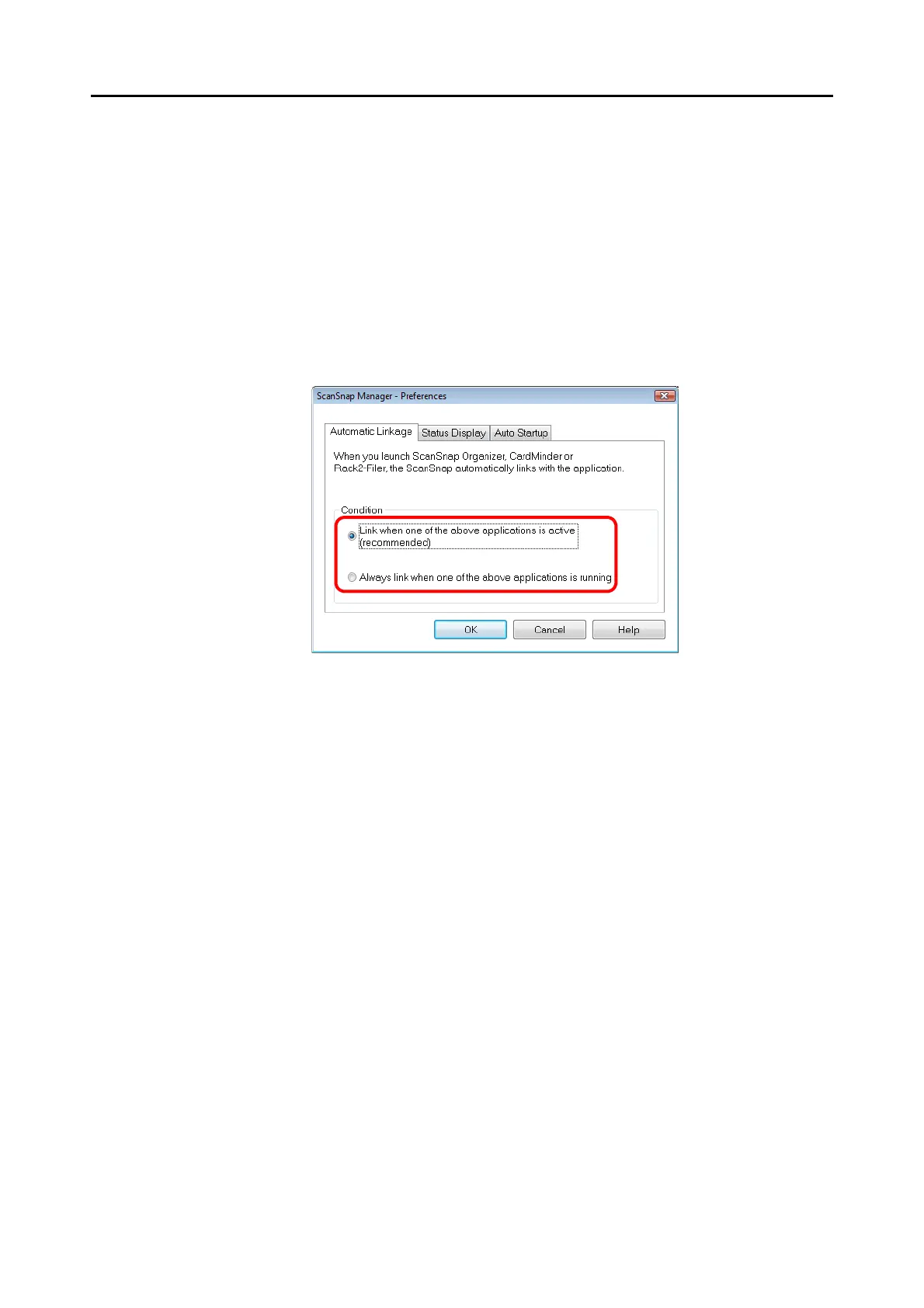 D Application will link with ScanSnap Manager using the linkage mode you selected.